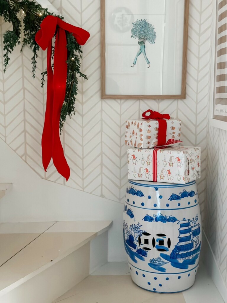 Adding a mirror or piece of art to your console table is a great way to create a focal point and make the space feel larger. Mirrors reflect light, which can help brighten up your space. As this console feature is for our entertainment center, I used an art screen saver to pull in the coastal theme.